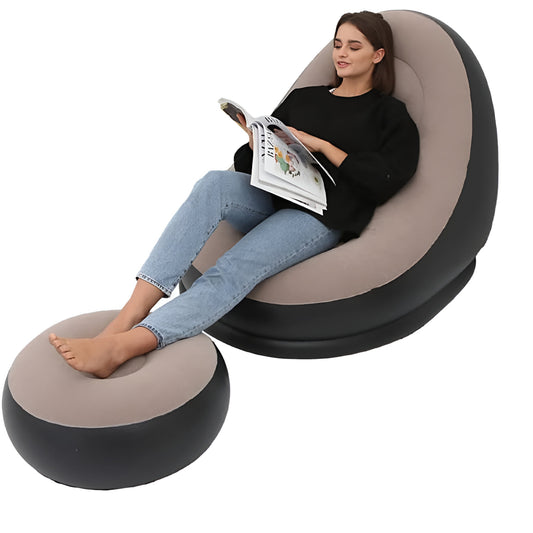 2-Piece Inflatable Lounge Chair & Ottoman Set – Portable Lazy Air Sofa for Indoor & Outdoor Relaxation | Ideal for Living Room, Bedroom, Balcony, Camping & More
