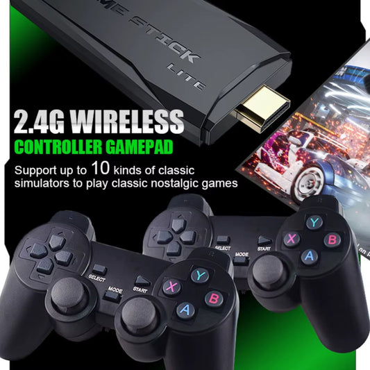 2.4G Wireless Retro Game Stick with Dual Gamepads | 4K HDMI Output | 25,000+ Built-in Games & 12 Classic Emulators