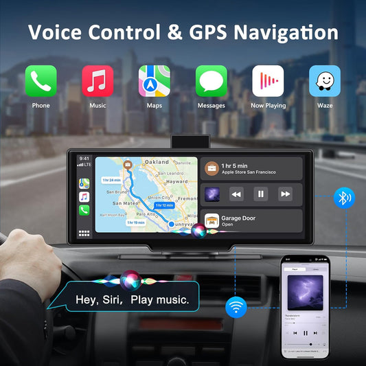 10.26” Smart Car Driving Recorder | Wireless CarPlay & Android Auto Screen with 4K Dash Cam, 1080P Backup Camera, GPS Navigation, Bluetooth & FM