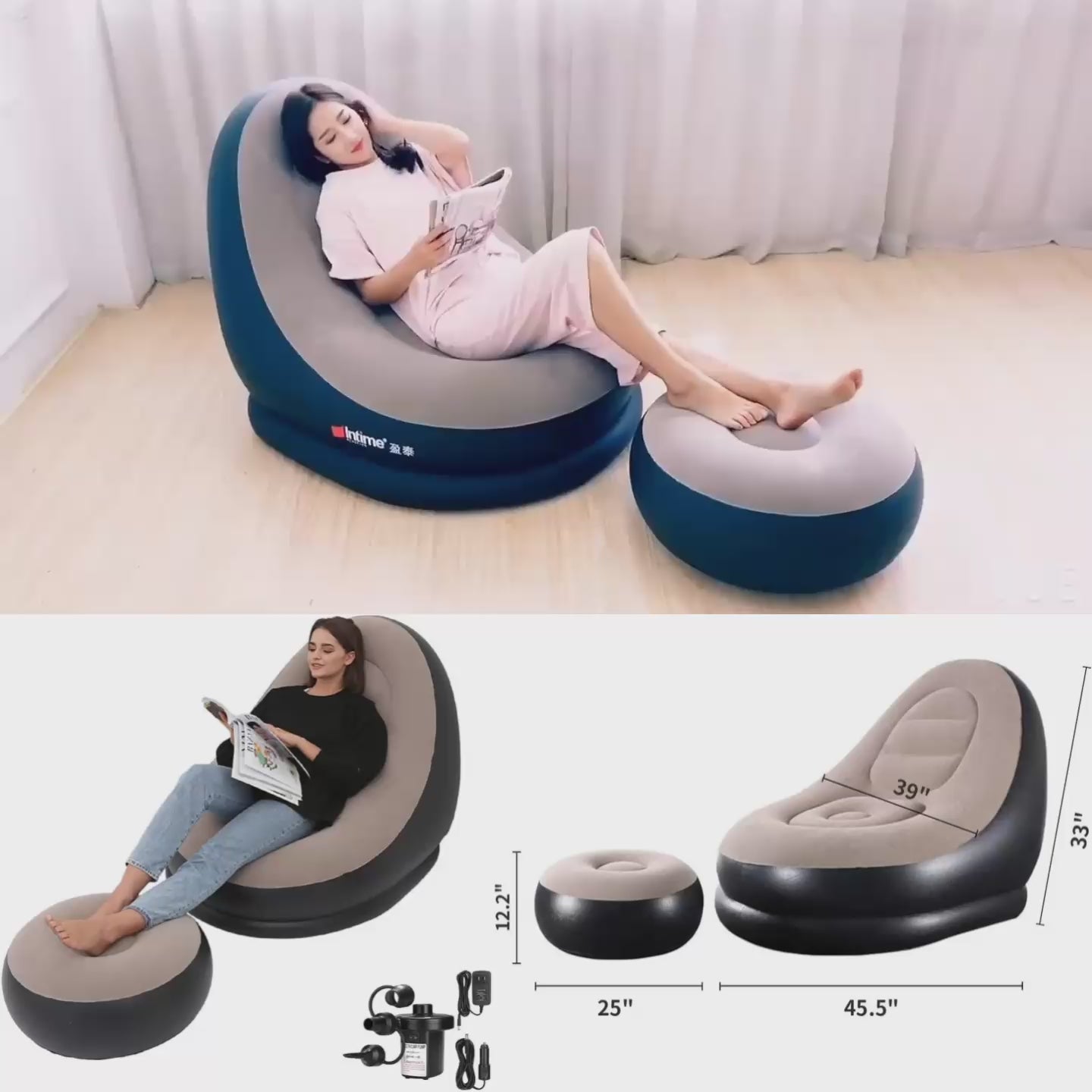 The Inflatable Lounge Chair & Ottoman Set is your go-to solution for portable comfort. Whether you're binge-watching your favorite series indoors or relaxing under the stars, this stylish and supportive set transforms any space into a cozy lounge. Lightweight, easy to store, and versatile – it’s the perfect companion for both homebodies and adventurers.