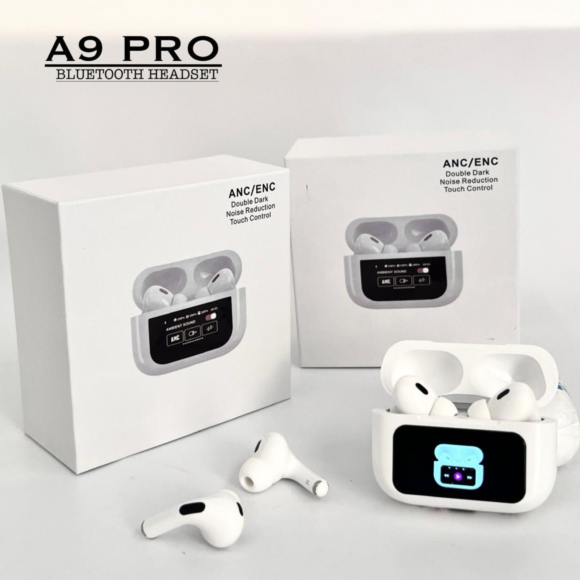 A9 Pro AirPods | ANC/ENC Double Dark Noise Reduction Touch Control Bluetooth Earbuds with LCD Display