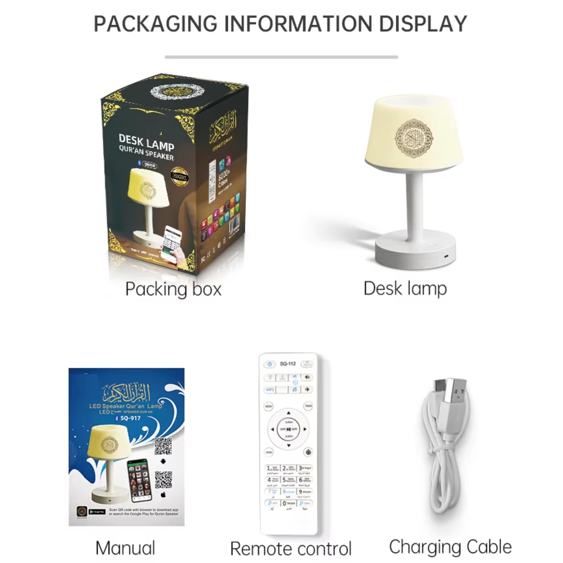 Illuminate your space and spirit with the Equantu SQ-917 Desk Lamp Qur’an Speaker — a perfect blend of modern design and Islamic devotion. Ideal for Ramadan, Eid, or as a thoughtful gift for loved ones.