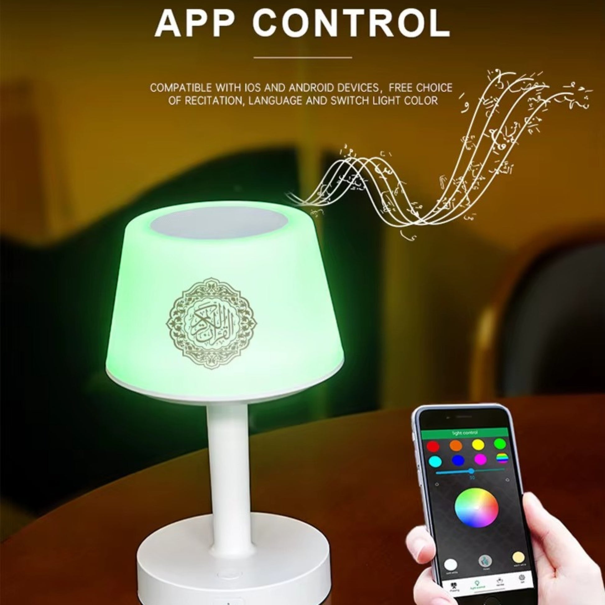 With Bluetooth connectivity, app control, and remote operation, you can easily adjust lighting, play Qur’an audio, or listen to your favorite nasheeds. Perfect for homes, offices, or travel, this compact and stylish Qur’an speaker lamp is ideal for enhancing your daily spiritual experience.