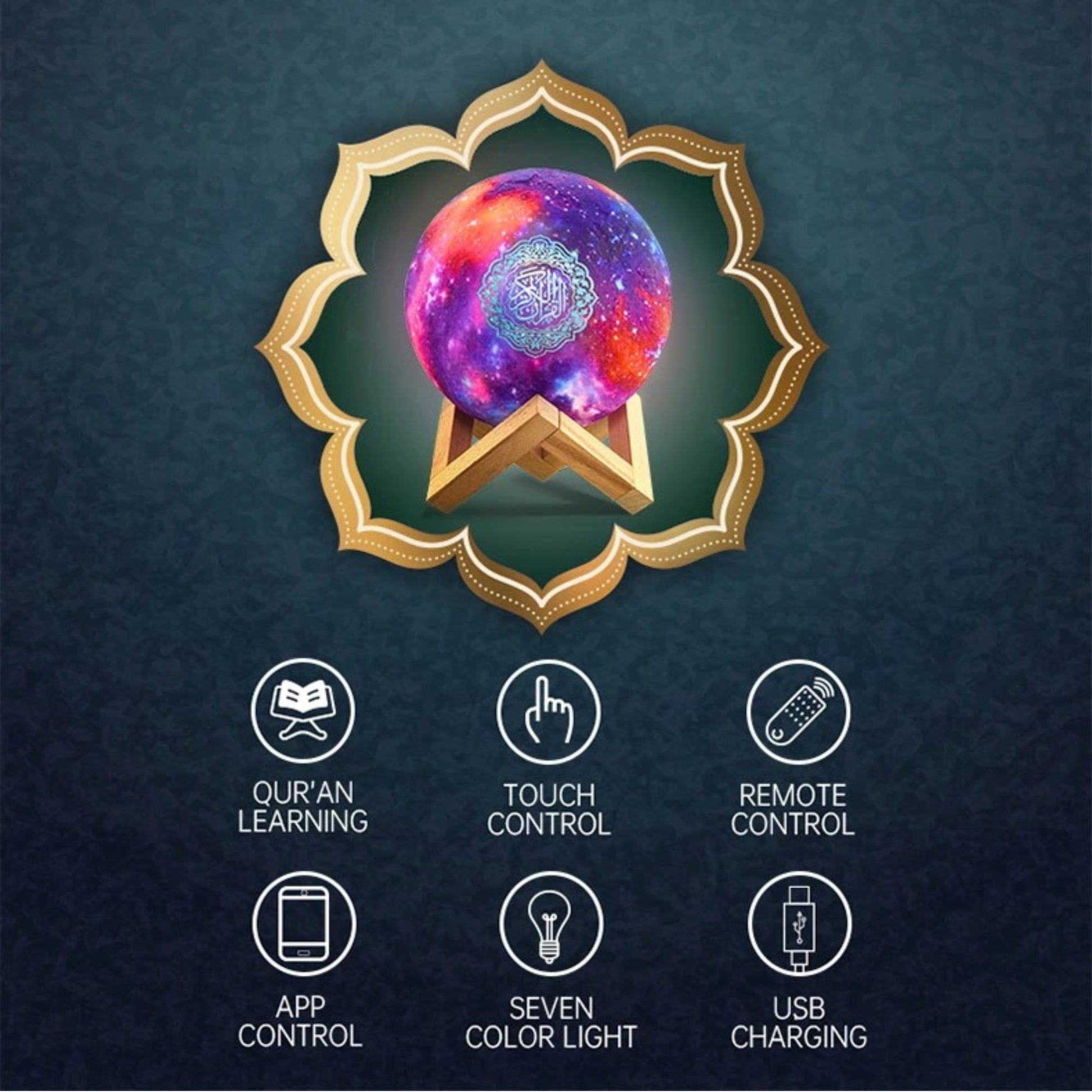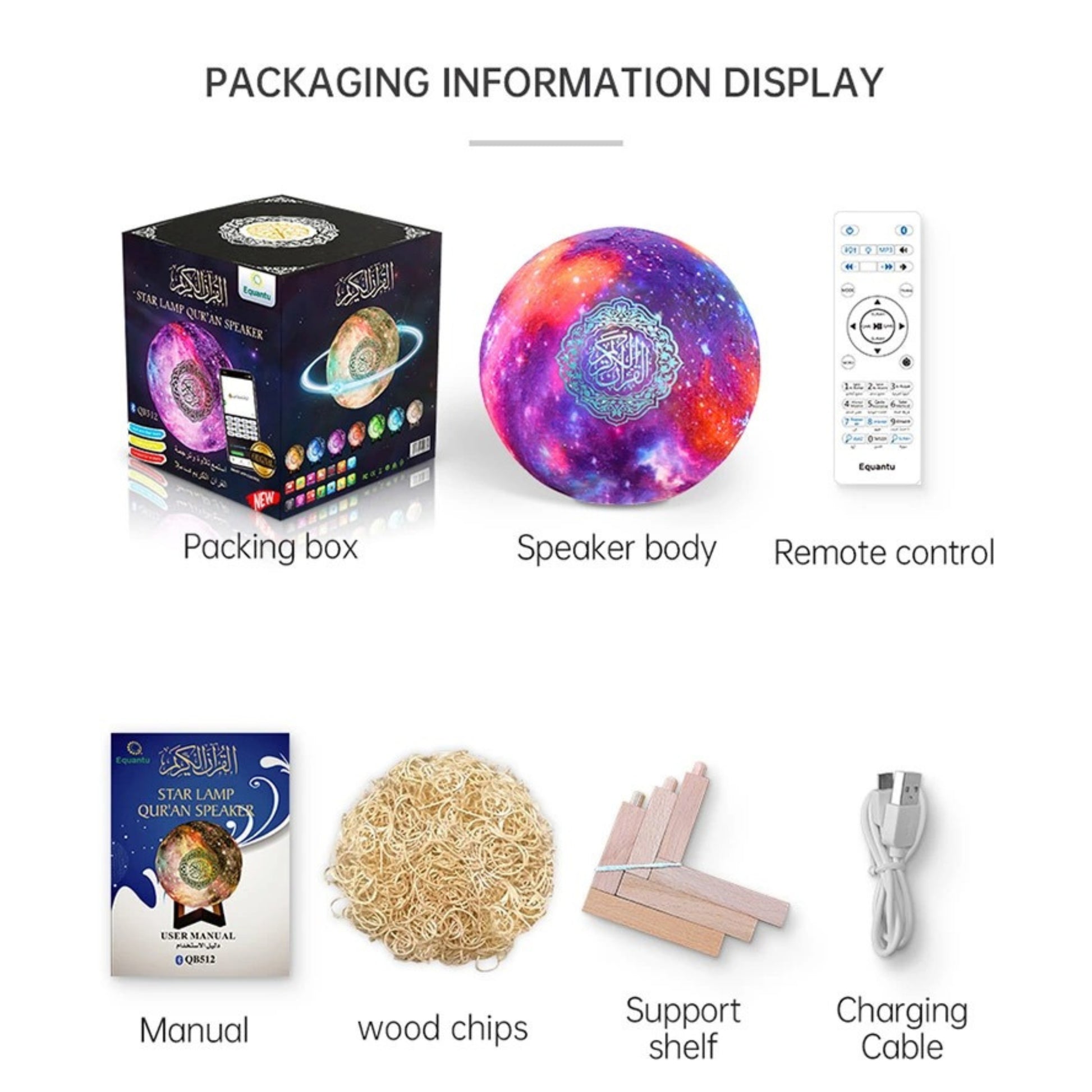 Equantu Star Lamp Qur’an Speaker QB512 – 7-Color Galaxy Moon Lamp with 18 Reciters, 14 Translations, Bluetooth, APP & Remote Control