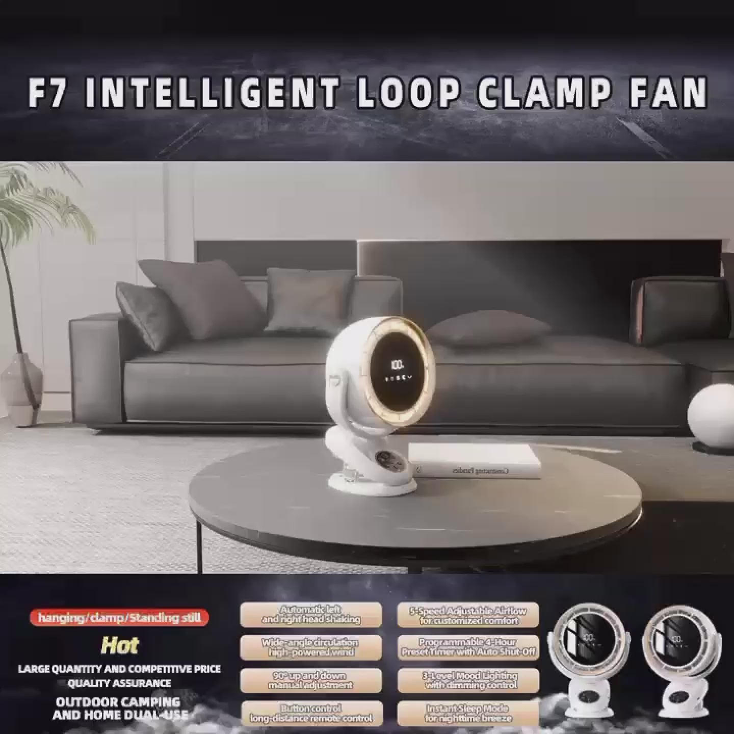 The F7 3-in-1 Multifunctional Clip Fan combines power, versatility, and smart design into one compact cooling system. With its whisper-quiet motor, oscillating airflow, remote control convenience, and ambient lighting, this fan adapts to your lifestyle—perfect for your bedroom, desk, or anywhere you need a refreshing breeze.