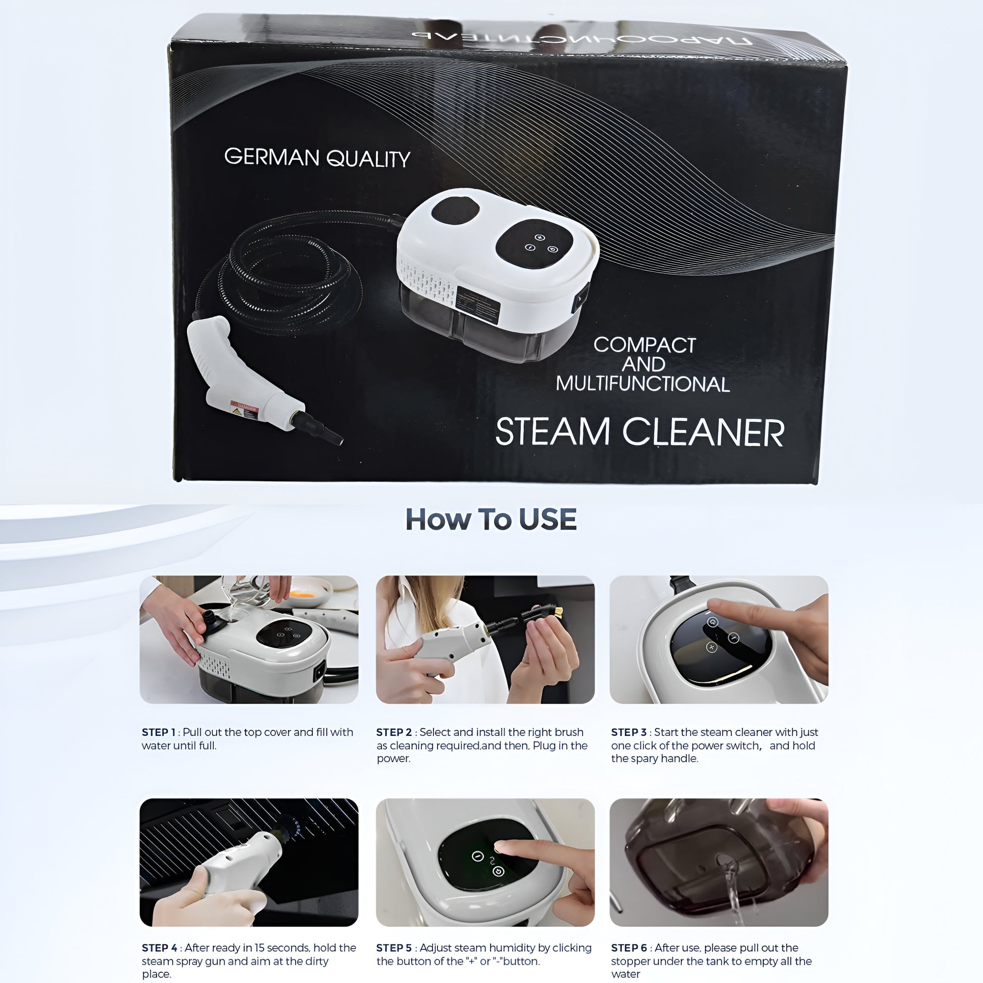Revolutionize your cleaning routine with the Steammcleaner 2500W, a powerful and versatile handheld steam cleaner designed to tackle stubborn dirt and grime with ease. With its 6-in-1 multi-functional accessories, smart touch control system, and ultra-fast 15-second heating time, this steam cleaner makes deep cleaning both efficient and effortless. Whether you're tackling kitchen grease, bathroom tiles, car interiors, or windows, this steam cleaner gets the job done with precision and power.