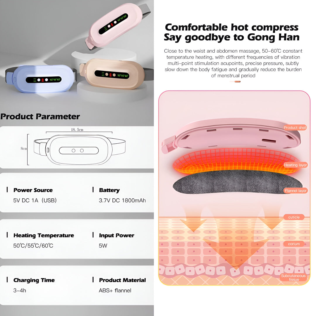 Say goodbye to discomfort with our Heating Pad, designed to offer instant and soothing relief from menstrual cramps. Featuring multi-stage vibration massage, rapid heating technology, and a soft velvet-touch fabric, this wearable heating pad wraps around your waist to provide warmth, pressure relief, and relaxation on the go.
