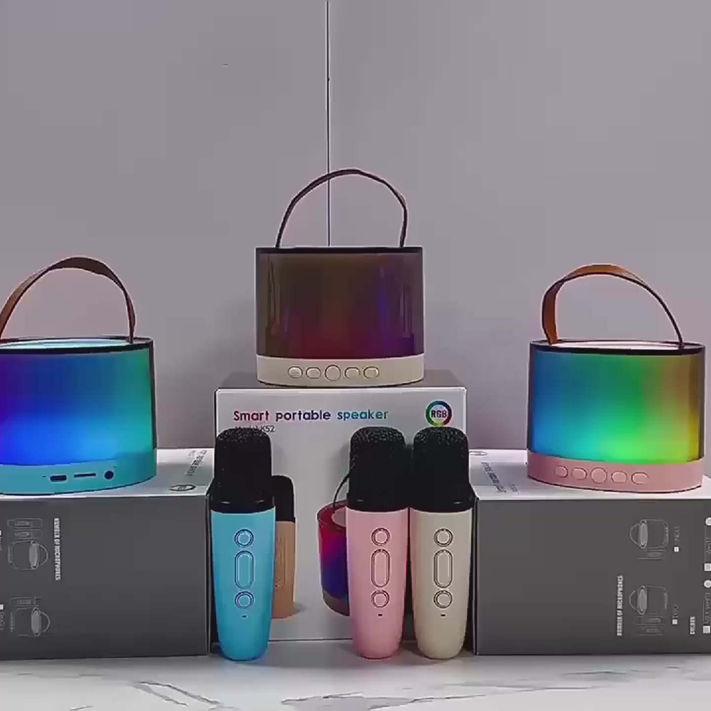 The K52 RGB Light Karaoke Machine is your go-to portable entertainment partner. With powerful sound, colorful lights, and dual wireless mics, it turns every moment into a stage performance — anytime, anywhere.