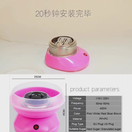 Turn any moment into a carnival with our Mini Electric Cotton Candy Maker! Designed for kids and families, this stylish pink tabletop machine transforms granulated or hard candy into fluffy, colorful candy floss in minutes. Made from safe, food-grade materials and featuring an upgraded high-efficiency quartz heating tube, it ensures fast, fun, and safe operation.