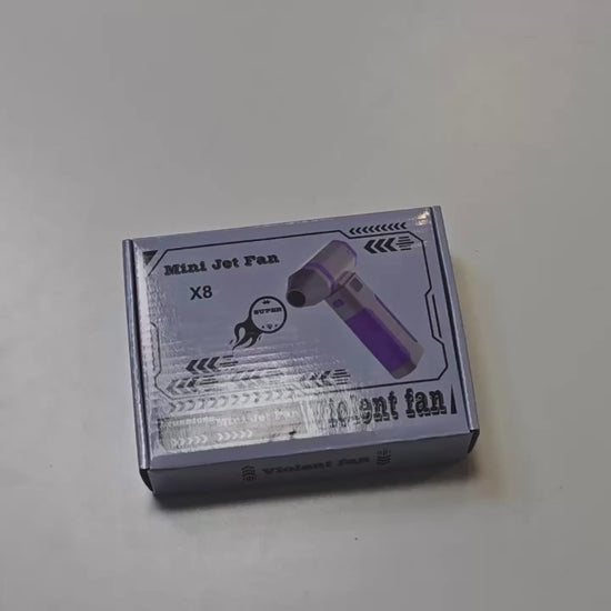 - Compact, Lightweight & Durable Design: Weighing only 180g, the Mini Jet Fan X8 is easy to carry, store, and use with one hand. Made from durable ABS plastic, it’s perfect for home, travel, outdoor use, or keeping in your car. Available in stylish colorways like gray/purple and matte black.