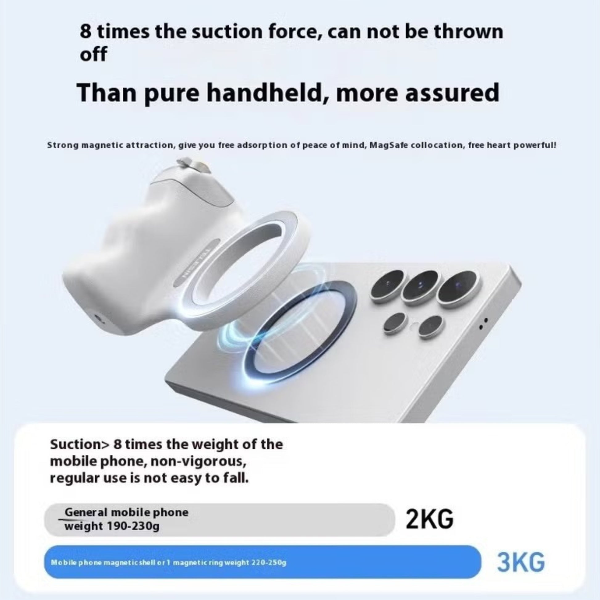 The dual-sided MagSafe magnetic mount securely attaches to your iPhone or compatible case, while the ergonomic handle ensures fatigue-free shooting.