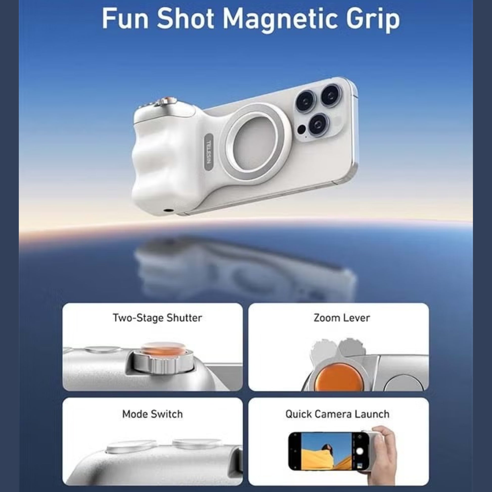 Transform your smartphone into a professional camera setup with the TELESIN Fun Shot Magnetic Grip 2. Designed for creators, vloggers, and mobile photographers, this innovative grip combines comfort, stability, and smart control.