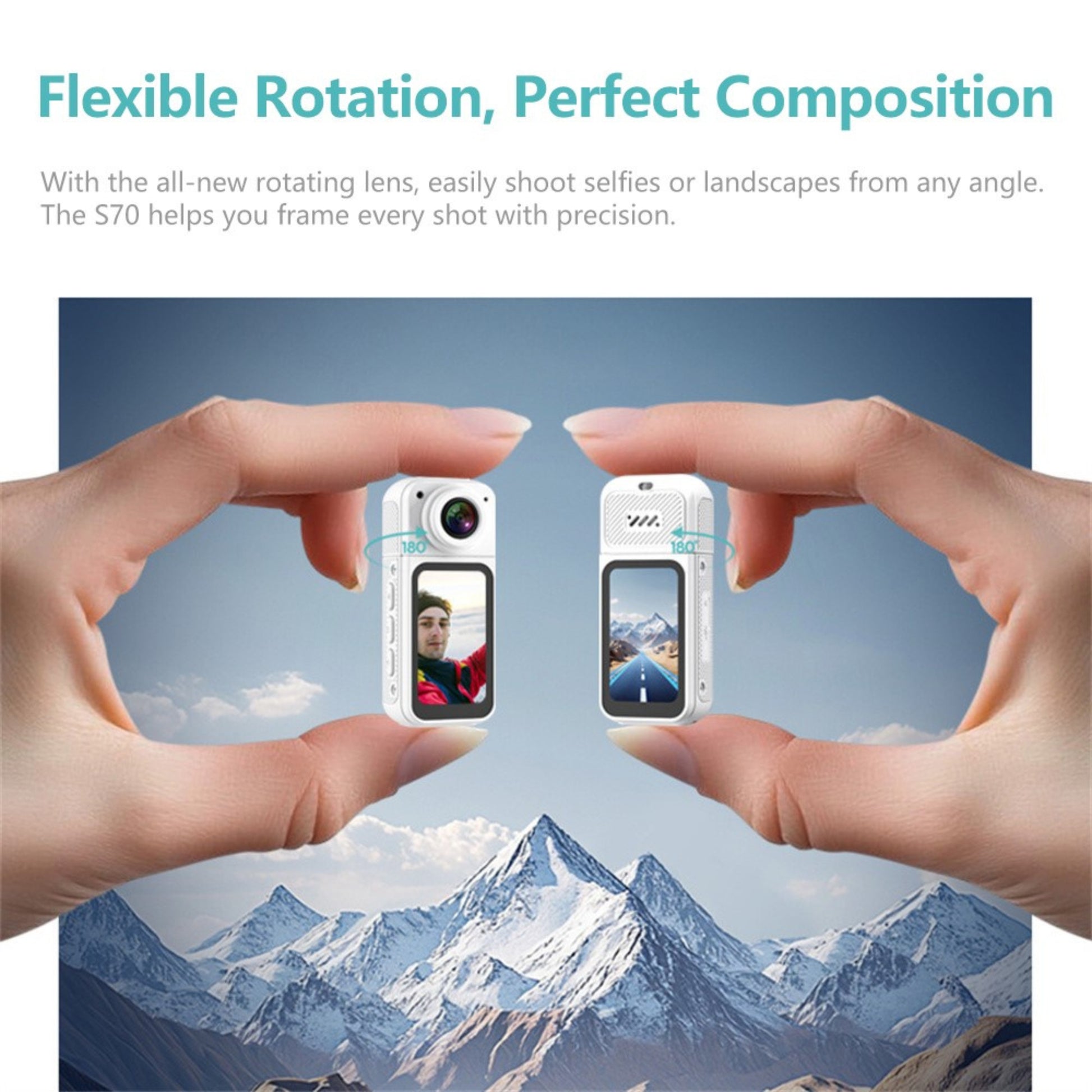 - 180° Rotatable Lens – Adjust the camera manually for versatile shooting angles and creative perspectives.