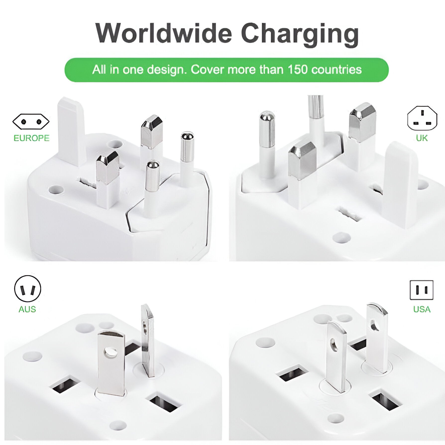 - Worldwide Compatibility: Supports plug standards in over 150 countries including USA, UK, EU, AUS, China, Japan, France, Spain, Italy, and more.
