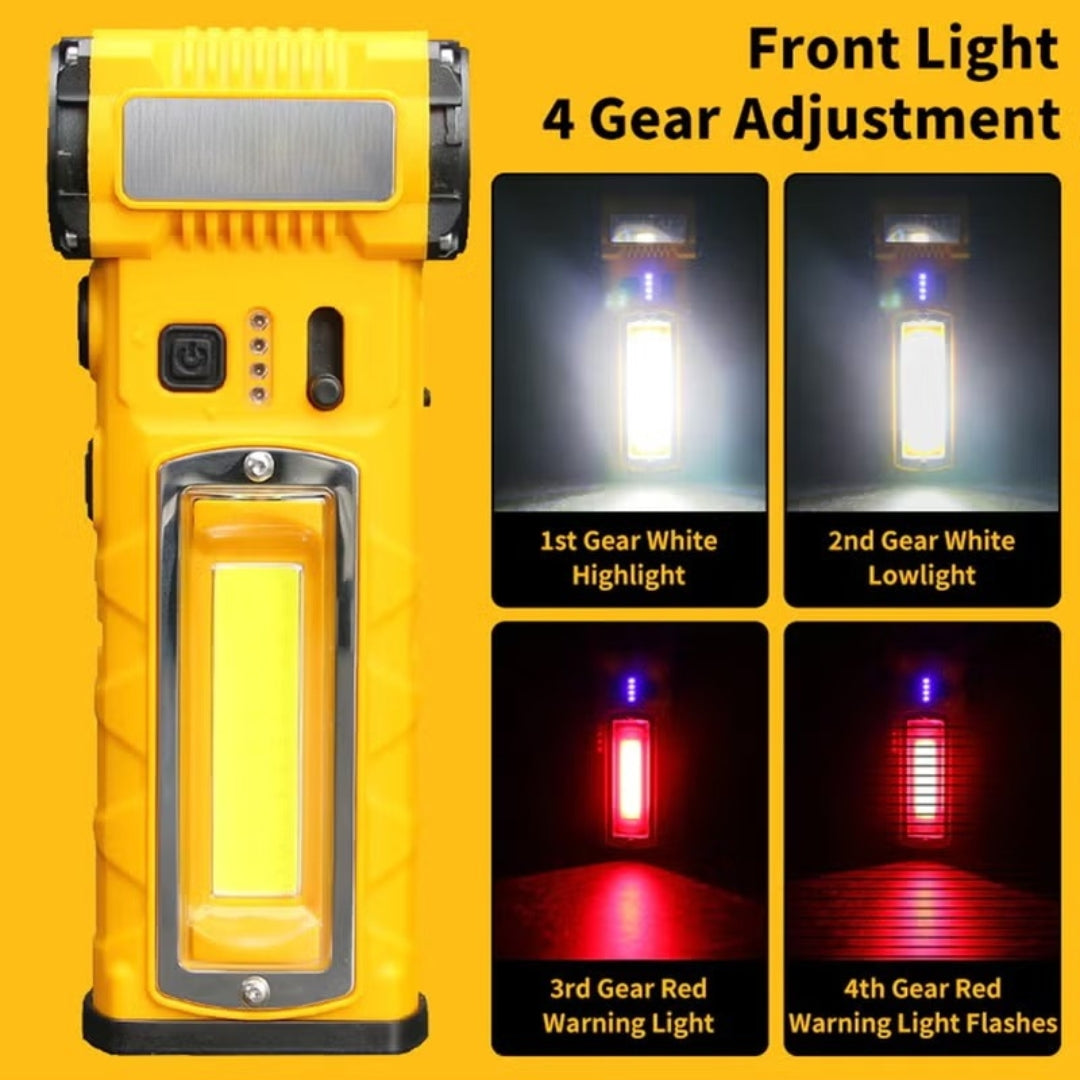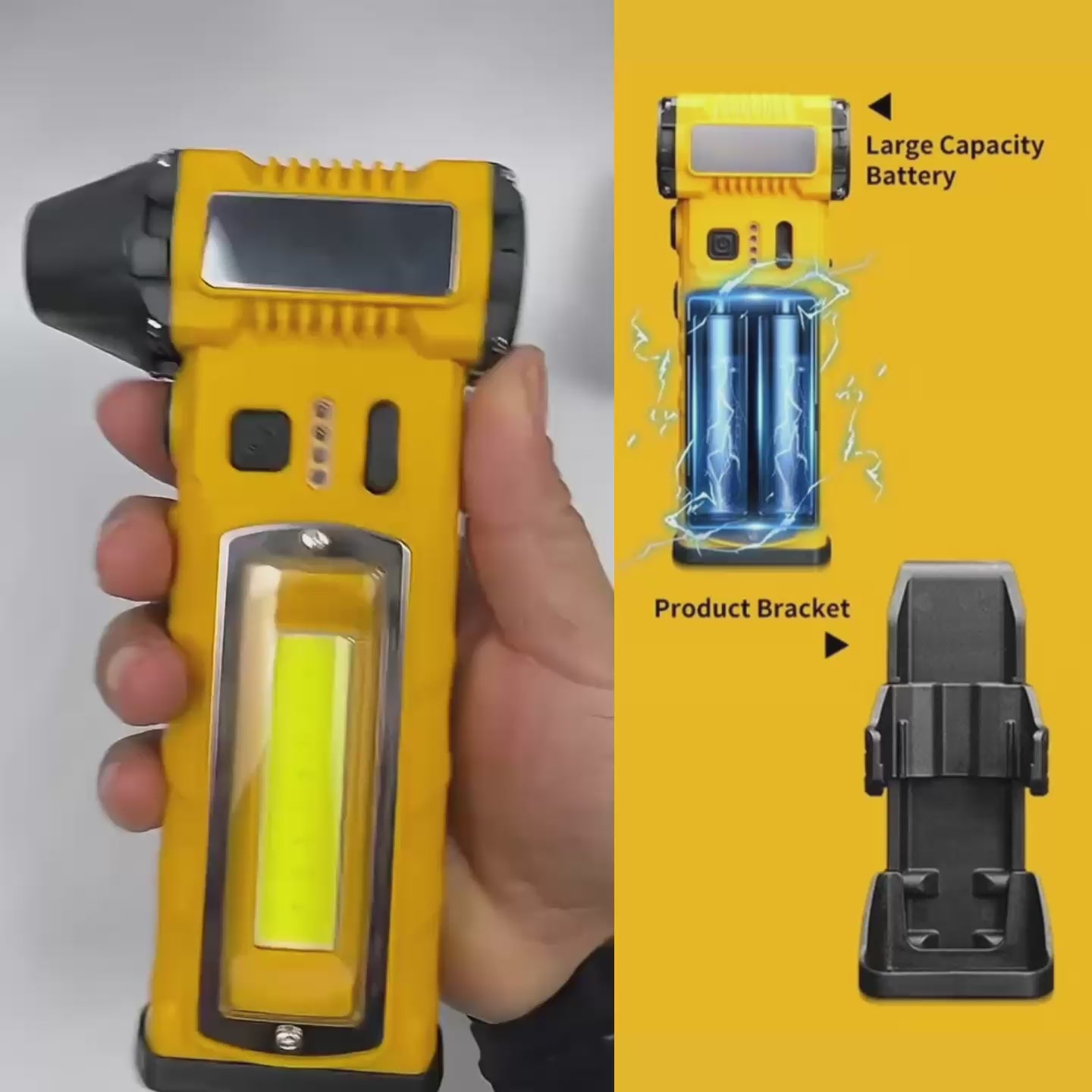 Equipped with a 5000mAh rechargeable battery and USB-C fast charging, it runs longer and charges quicker. The dual LED lighting system (front & side lights) ensures visibility in low-light conditions, while the emergency seat belt cutter and magnetic base make it an essential tool for both everyday use and unexpected situations.